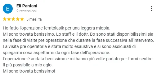 No, l'intervento non è doloroso. Si esegue con anestesia in collirio, al massimo potresti avvertire una leggera pressione o la sensazione di occhio bagnato, niente di più. Nelle ore successive può esserci un lieve fastidio che si risolve rapidamente.